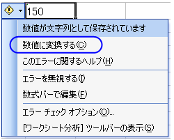「数値に変換する」をクリック