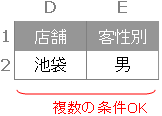 例:店舗が「池袋」、客が「男」の金額を合計する【複数条件】