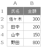 「氏名」を基準として、2行1列移動した値を返す