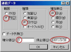 停止値=「2011/3/28」 設定したら「OK」をクリック