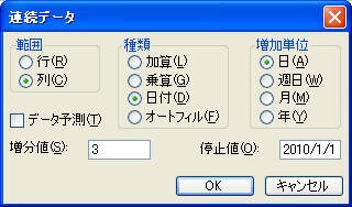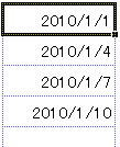 ↓2010/1/1〜2010/1/10までの日付が3日間隔で入力されました。
