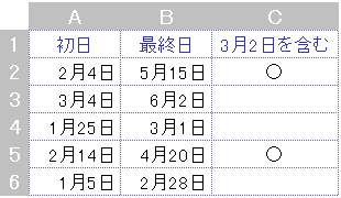 ■ 例:期間内で、3月2日を含む場合は○をつける