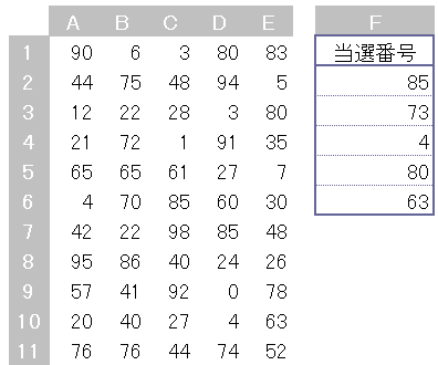 例:当選番号と同じ番号のセルに自動で色を付ける