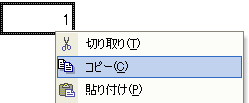 1のセルを選択して右クリック−「コピー」をクリック