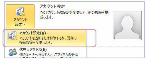 【ファイル】タブ−「アカウント設定▼」−「アカウント設定」をクリック