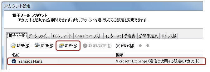 アカウントを選択し、「変更」をクリック