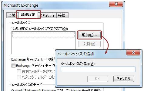 【詳細設定】タブ−「追加」をクリックし、予定表の所有者を入力