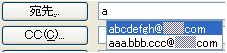 例えば、aaa.bbb.ccc@abc.comと入力すると次回「aaa…」と入力しただけで↓のようにアドレス候補が表示されます。
