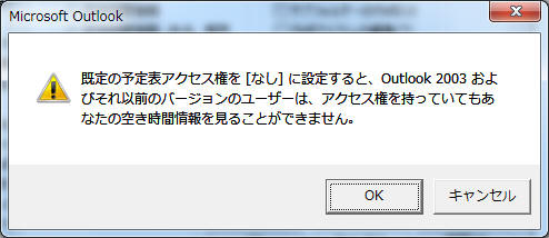 ▼ 予定表の既定のアクセス権を「なし」にすると表示されるメッセージ