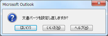 「文書パーツを設定し直しますか?」のメッセージには「はい」をクリック