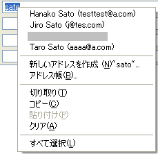 ■ 動作例1:アドレスの一部や表示名を入力するとアドレス帳を参照して自動確定