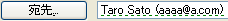 これらの候補から特定のアドレスを選択すると、次回から"sato"を入力し た場合、そのアドレスが緑の点線付きで自動確定されるようになります。(★2010ではこの動作はしません。)