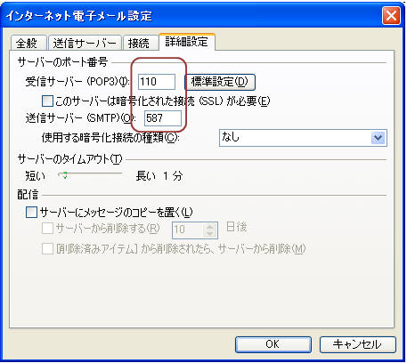 「詳細設定」タブでポート番号の変更が必要な場合があります。プロバイダーからの情報を確認しましょう。