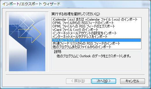「ファイル」−「インポートとエクスポート」をクリック