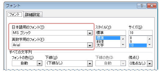 (2010では日本語用、英数字用の2つのフォントを指定できます。)