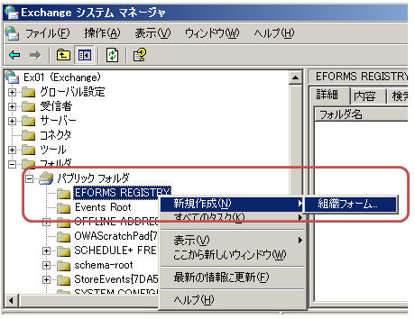 組織フォームライブラリを作成する(Exchange Server2003)