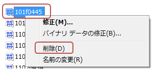 例:受信トレイの検索履歴なら101f0445を右クリックし「削除」