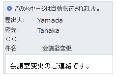 「このメッセージは自動転送されました」という表記でBからリダイレクトされたのだと理解できます。
