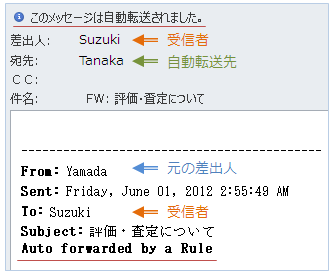 Exchangeのバージョンによってリダイレクト先に配信されたメールのFromとToの表記が異なるようです。
