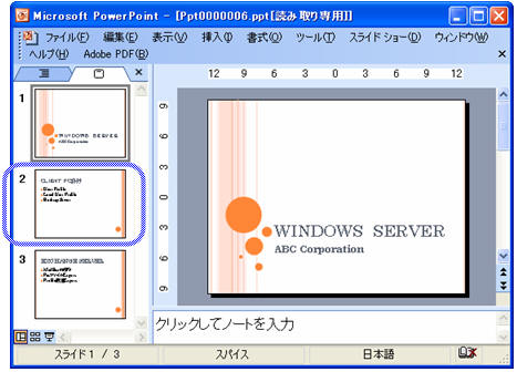 ( ※ スライドペインが表示されていない場合は、【表示】−「標準」をクリックしてください。