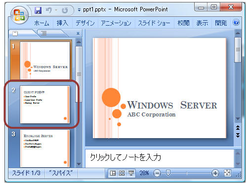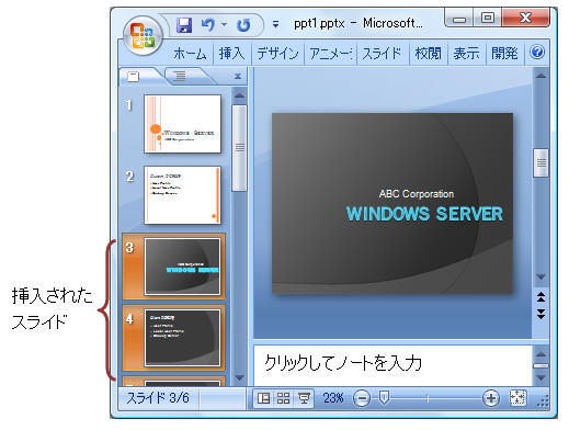 スライドをクリックすると、そのスライドのみが挿入されます。