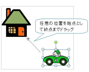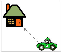 緑の車が家まで移動するアニメーションを設定してみましょう。