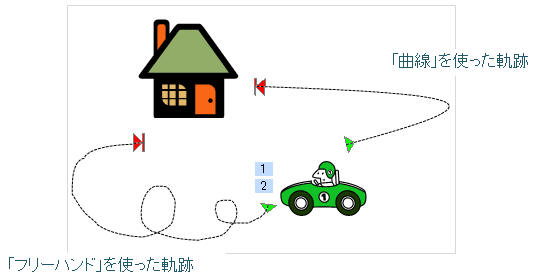 アニメーションの軌跡で「曲線」「フリーフォーム」「フリーハンド」を選択すると繊細な動作やカーブを描くような動作を設定することができます。