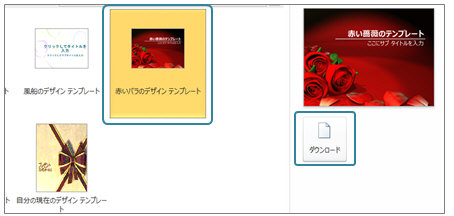 PowerPointでは予めインストールされているテンプレートの他に、Webからもダウンロードできます。