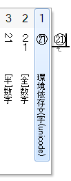 ※丸数字は記号辞書に登録されています。変換候補に表示されない場合はMS-IMEの「ツール」−「プロパティ」−「辞書/学習」タブので「記号辞書」を選択し「一般」にチェックを入れてください。(一般変換モードで記号辞書を使う、という設定)
