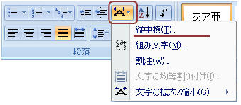 「縦中横」ダイアログで"行の幅に合わせる"にチェックを入れ「OK」をクリック