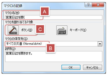 マクロ名を入力し(A)、マクロの保存先