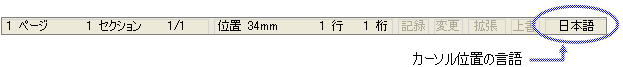 尚、ステータスバーの中央より右に「日本語」または「英語(US)」等と表示されていると思いますが、これが現在認識されている言語です。
