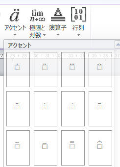 「デザイン」タブ−「アクセント▼」から使いたいアクセント記号や位置を選ぶ