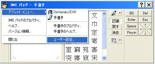 IMEパッドのメニューから「アプレットメニュー」−「ユーザー設定」をクリック