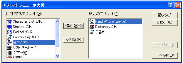 コントロールパネル−「地域と言語のオプション」−「言語」−「詳細」−「追加」をクリック