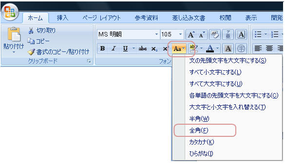 ですので@全ての文字を全角にした後、Aカタカナ以外