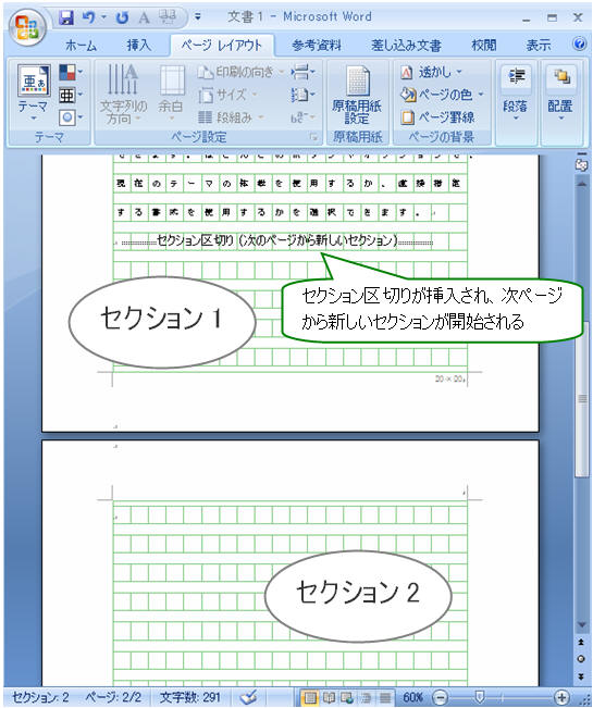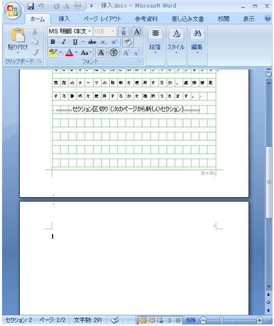 ↓ 次ページが新しいセクションとして挿入された