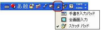 言語バーの「手書き」ボタン−「スケッチパッド」をクリックします。