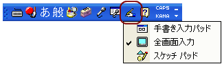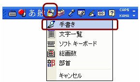 言語バーの「手書き」ボタン−「手書き入力パッド」をクリックします。