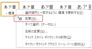 「ホーム」タブ−「標準」を右クリックし「変更」をクリック