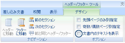 「デザイン」タブ−「オプション」枠にある「文書内のテキストを表示」のチェックを外す