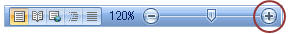 画面右下のズームスライダの「拡大」ボタンをクリックすると10%ずつ拡大することができます。