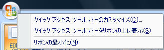 [Office]ボタン上で右クリック−「クイックアクセスツールバーのカスタマイズ」をクリック