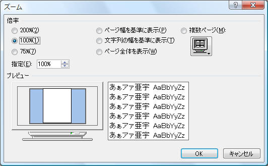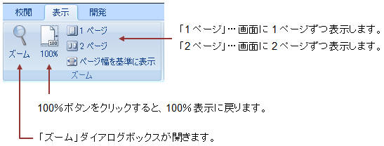 【表示】タブ−「ズーム」を使う