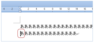 Word2007:2行目先頭にスペースを入力すると1行目がずれる |