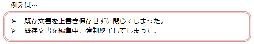 (2) 既存ファイルを復元したい場合 (強制終了した、上書き保存し忘れた)