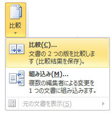 「校閲」タブ−「比較▼」−「比較」をクリック