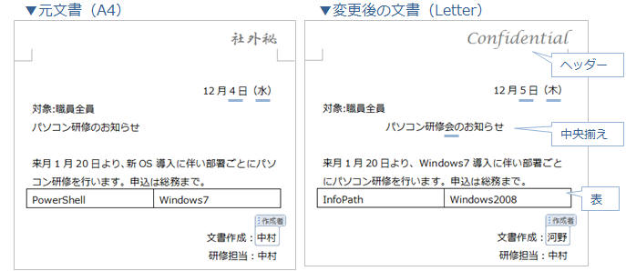 ここでは下記2つの文書を比較し、履歴を表示する文書による違いを確認してみましょう。