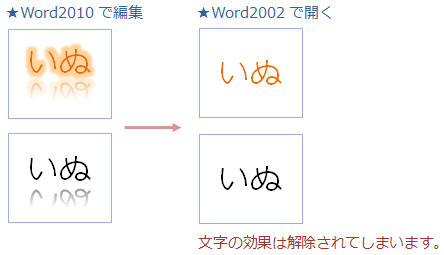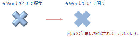 尚、以前のバージョンで保存を行い解除された書式は再度2010で開いても復旧しません。