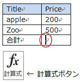 セル内にカーソルを置き、「レイアウト」タブ−「計算式」ボタンをクリック